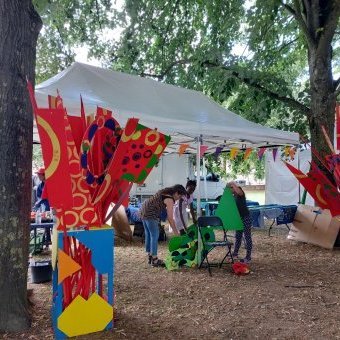Pour annoncer l’arrivée de la flamme olympique le 21 juillet 2024 à Villejuif, les PlastiKeuses ont été sollicitées pour proposer la création d’une scénographie déambulante lors de fabriques de rue sur un mois en amont.