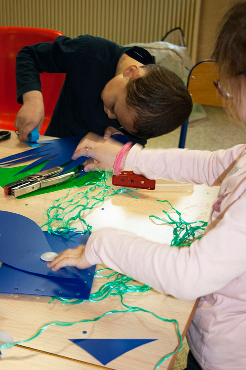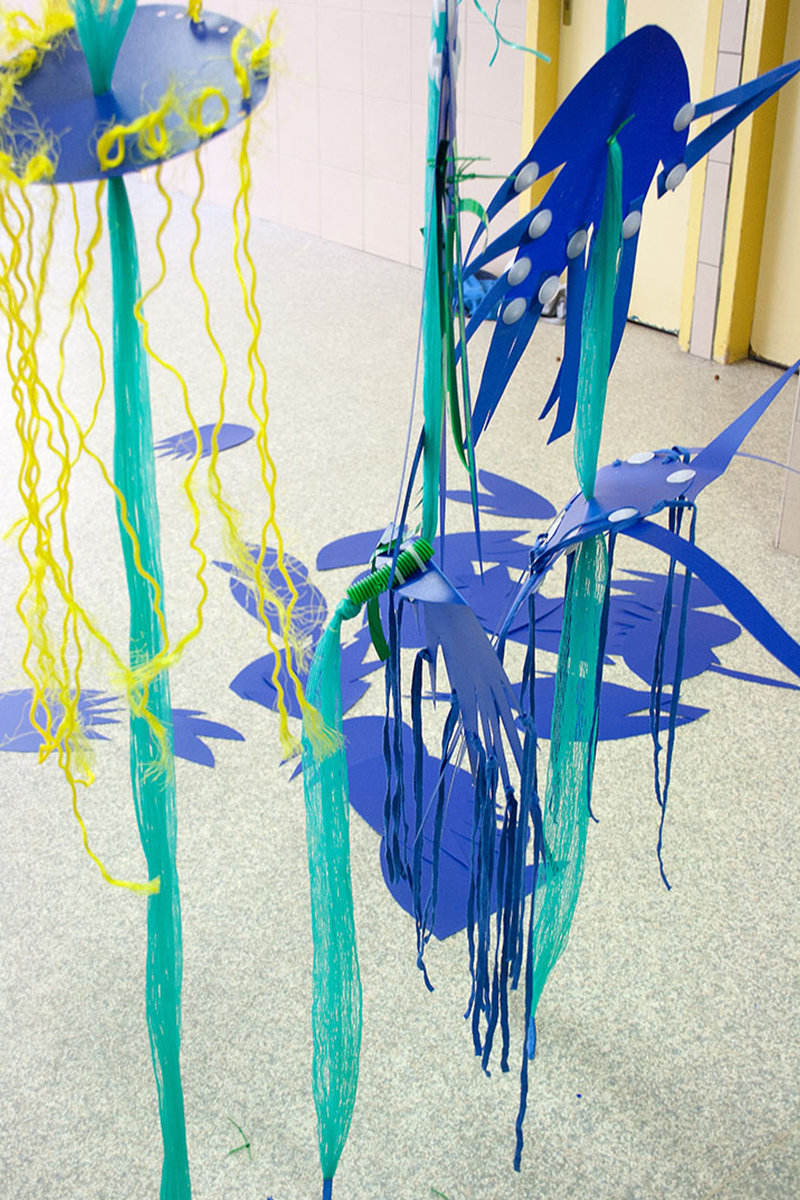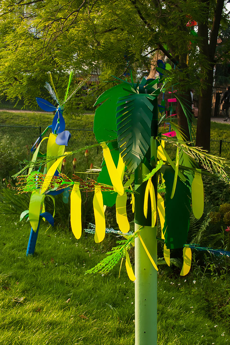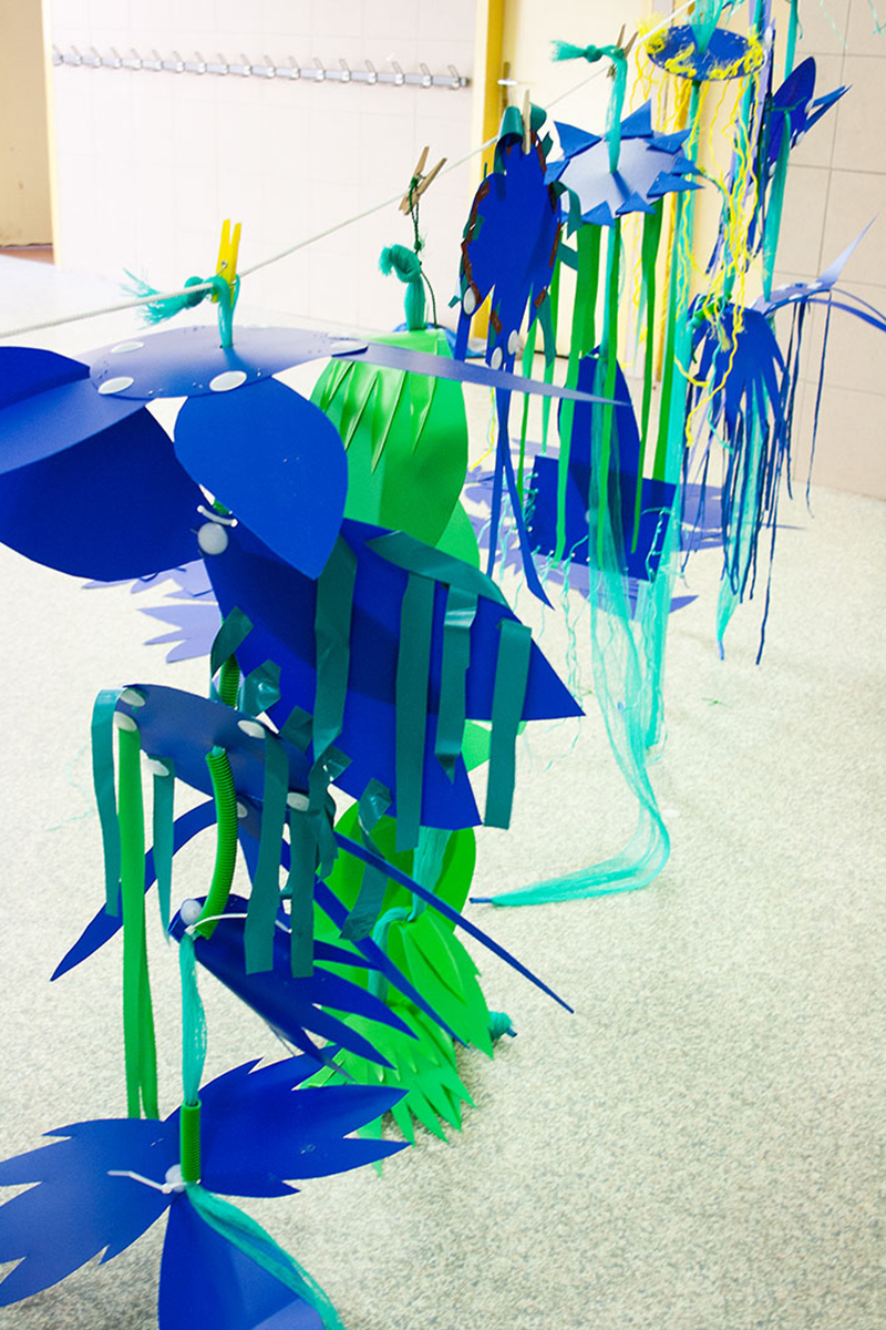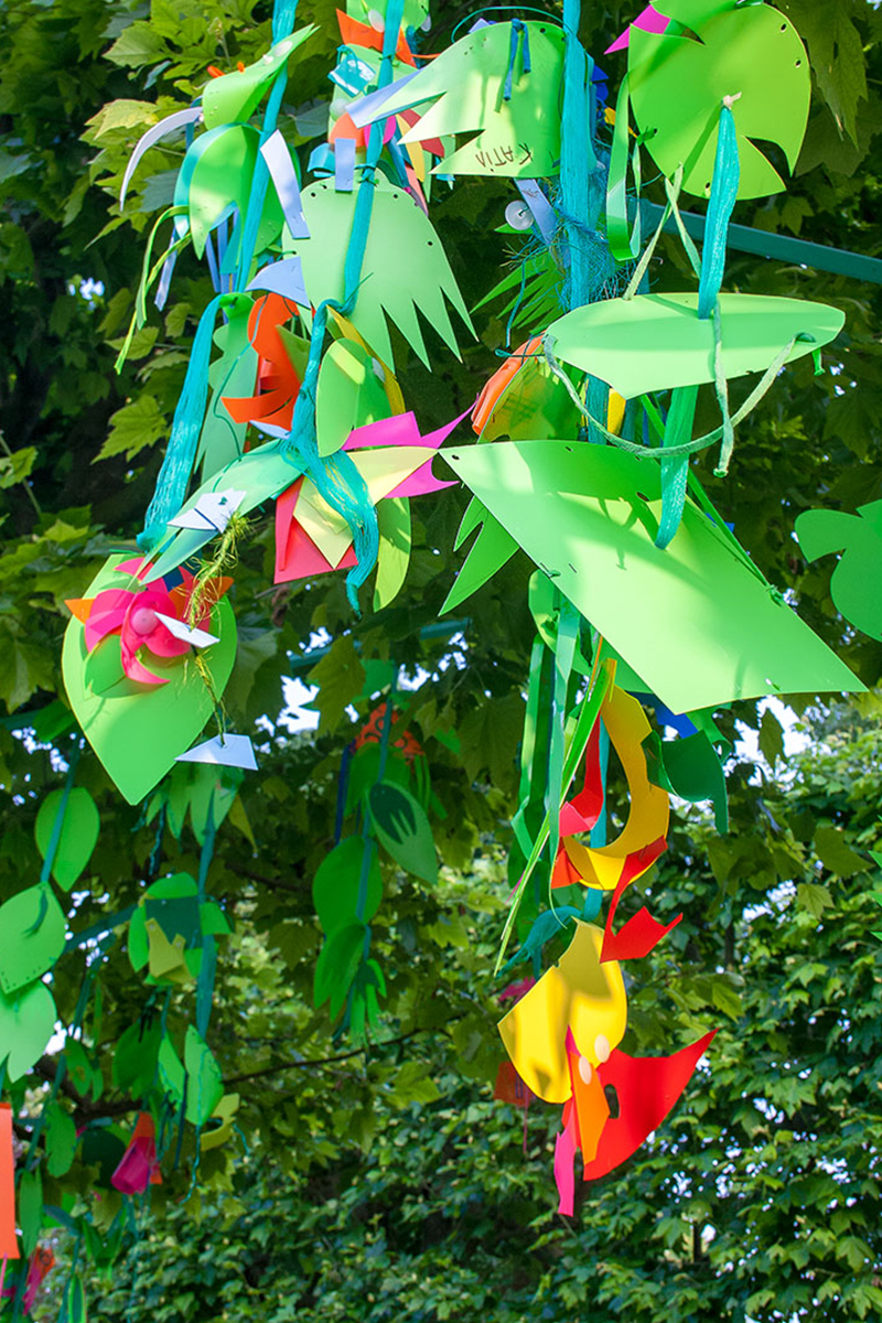 Nous réalisions des objets plastiques dans nos ateliers, et étions accueillis dans différents structures pour accompagner les publics dans la fabrication d’éléments scénographiques. Nos interventions s’étendaient sur 6 mois en amont de l’événement avec la rencontre de plus de 500 personnes de tous âges , dans des contextes et environnement multiples de la ville , autant pour des publics ciblés lors d’ateliers en intérieur, qu’en milieu ouvert avec des fabriques de rue.