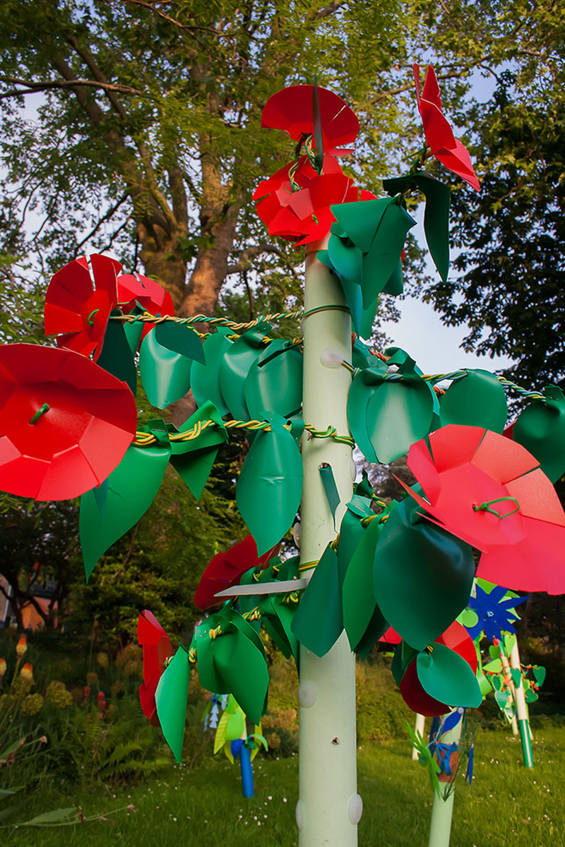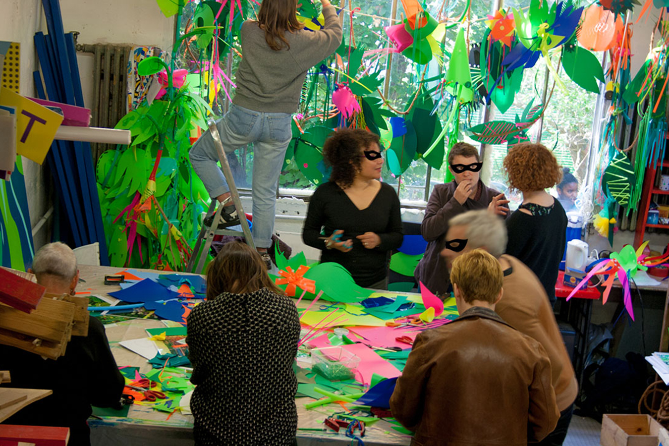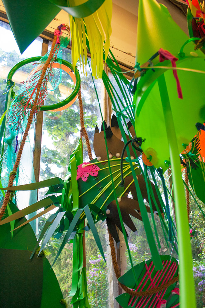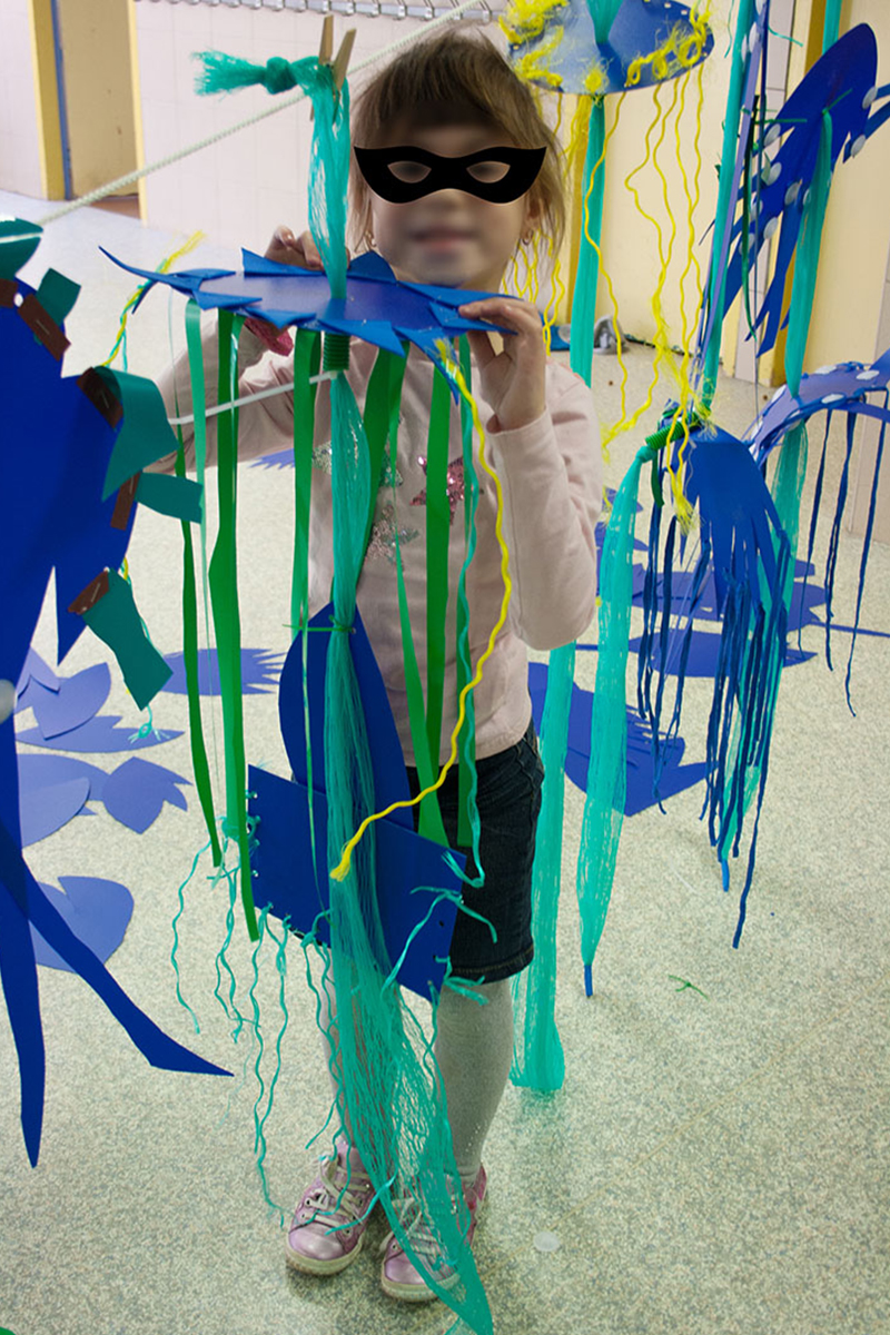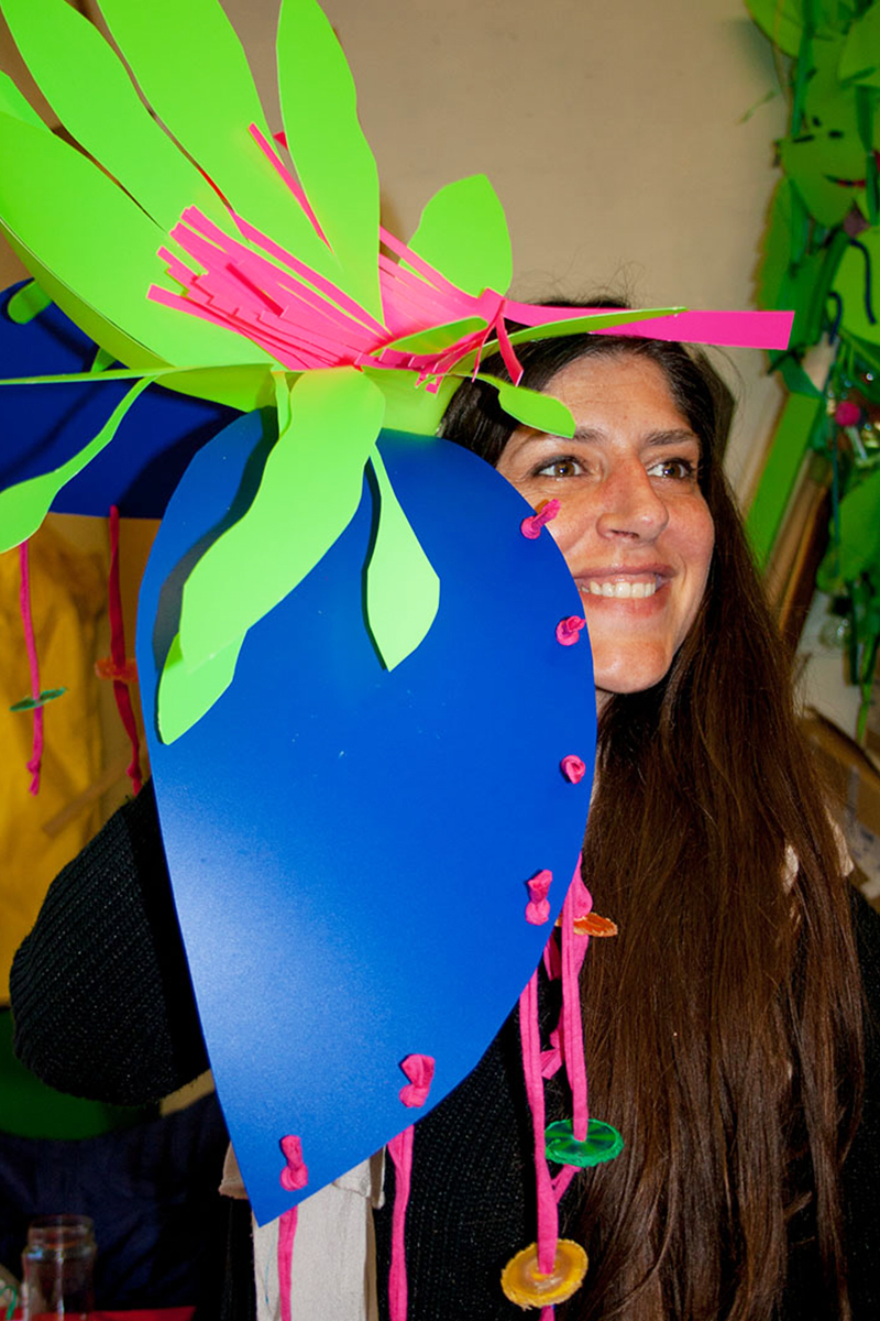 Nous réalisions des objets plastiques dans nos ateliers, et étions accueillis dans différents structures pour accompagner les publics dans la fabrication d’éléments scénographiques. Nos interventions s’étendaient sur 6 mois en amont de l’événement avec la rencontre de plus de 500 personnes de tous âges , dans des contextes et environnement multiples de la ville , autant pour des publics ciblés lors d’ateliers en intérieur, qu’en milieu ouvert avec des fabriques de rue.
